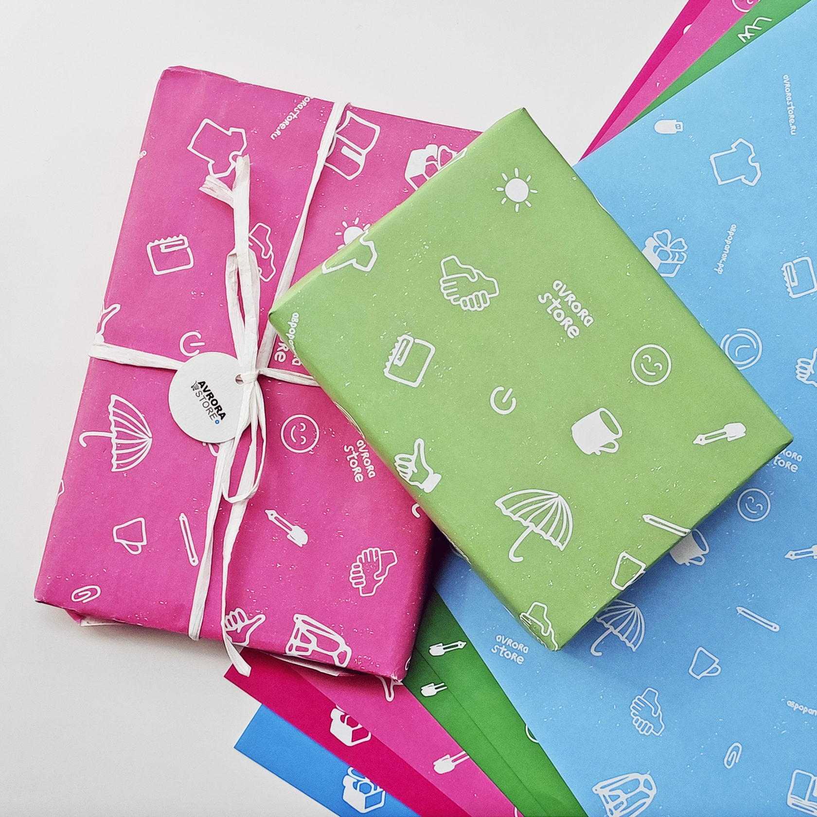 Упаковочная бумага — это всегда эффектно и практично! Бумага выполняет сразу несколько функций: придает подарку особые эмоции при распаковке + сохраняет то, что лежит внутри от царапин и каких-то небольших повреждений. Мы предлагаем вам отличную возможность обратить на себя внимание с помощью полноцветной запечатки упаковочной бумаги — это могут быть ваши фирменные цвета, паттерн либо бумага может быть дизайнерской с различными текстурами и эффектами. Оформите заказ через корзину указав необходимый тираж, а так же свои пожелания и наш специалист произведет расчет и свяжется с вами.